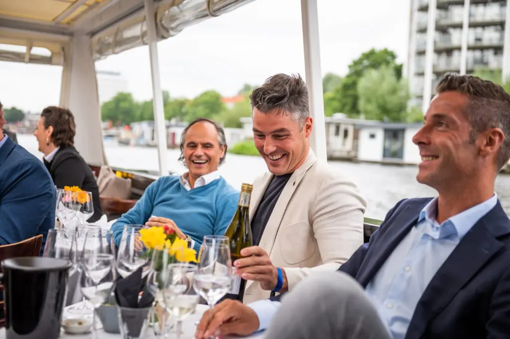 ‘s Avonds over het water varen is ook heel bijzonder! Boek bij ons een rondvaart Rotterdam met diner. We kunnen het precies organiseren zoals jij het wilt. Terwijl jouw gasten twee uur lang uitkijken over de schitterende Maasstad en de haven, word je verwend met een heerlijke maaltijd. Laat het organiseren maar aan ons over, dan kun jij intussen genieten van de rondvaart en van je gezelschap. Je kunt je dinerboot op verschillende punten in de stad laten vertrekken, op elke datum reserveren die je maar wilt. Wij vinden graag een passend schip, op basis van de grootte van jouw groep, jouw thema of gelegenheid. Wil je zakelijke relaties trakteren op een exclusief diner? Gaat je aandacht meer uit naar een informele sfeer, bijvoorbeeld voor een rondvaart door Rotterdam met diner als personeelsuitje? Ook voor kleinere groepen vinden we de perfecte match. Eenmaal aan boord, is het tijd om te genieten van de historische pracht vanaf de Rotterdamse wateren. Jij bepaalt wat er op het menu staat! Ook houden we natuurlijk rekening met bijzonderheden of dieetwensen, geen enkele probleem. We vinden altijd iets dat perfect past bij je gezelschap èn budget. De bediening legt je helemaal in de watten. Dit wordt een rondvaart met diner door Rotterdam om te onthouden!