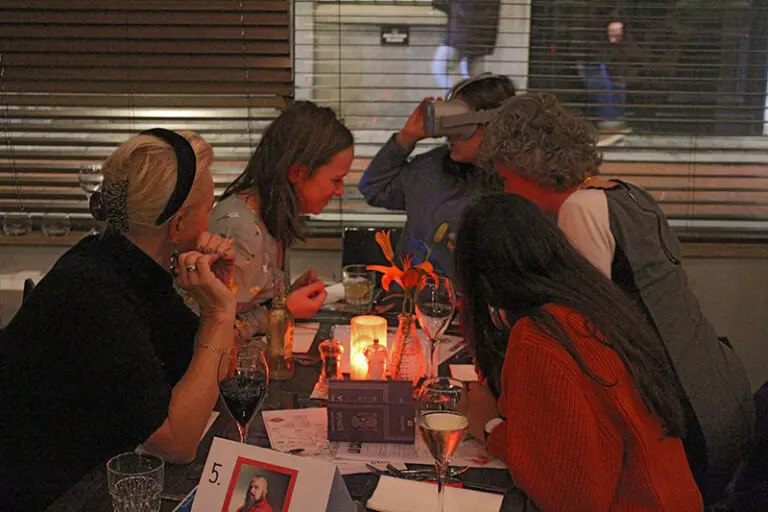 Speciaal voor jouw gezelschap, reserveren we een privé diner ruimte. Zet je VR-bril op en laat je onderdompelen in een schijnwerkelijkheid waar alles kan. Tussen de gangen door is het allerbelangrijkste: ‘Kijk om je heen, verzamel zo veel mogelijk details en stel je team op de hoogte’. Samenwerken is heel belangrijk, want de hints uit de virtuele wereld moeten worden gecombineerd met de hints die op tafel liggen. Wees scherp en snel, zorg ervoor dat je niet gepakt wordt en het geld verliest! De avond eindigt met een heerlijk dessert en genoeg tijd om na te praten.
